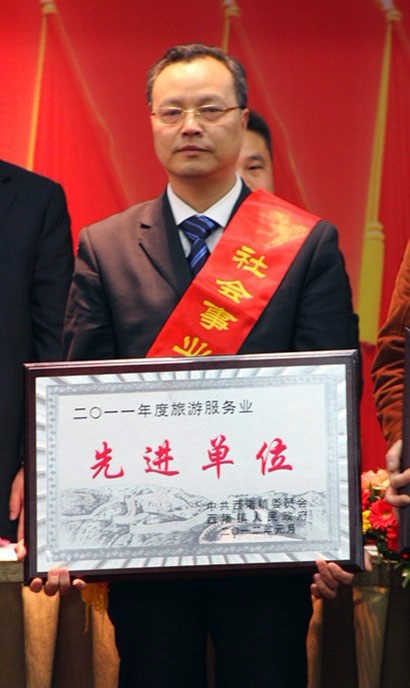 江苏云湖国际会议中心座落在景色怡人的云湖风景区,自试营业以来,客源不断,也接待了宜兴市内很多市政会议、企事业单位培训会议、或者各类型洽谈会,受到业界及市政领导、到访宾客一直好评,也逐渐建立了良好的市场影响力。在西渚地区内,以客为本的宗旨,站在旅游服务行业的领航位置,也是唯一一家以五星标准建造的豪华酒店。在酒店全体员工集体努力下,经过评比,顺利获的2011年度旅游服务业先进单位的光荣称号。酒店副总经理陈祖林先生出席此次会议并领取奖牌。