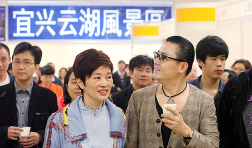 (2012年5月2日 宜兴) 5月1日,海派清口创始人周立波先生应邀来到宜兴大觉寺,在2012中国.宜兴两岸素食文化暨绿色生活名品博览会论坛上主讲《吃素不代表吃“素”的》。演讲前,他和夫人胡洁在大觉寺妙玉法师的带领下参观大雄宝殿和素博会,吸引了许多游客的目光。